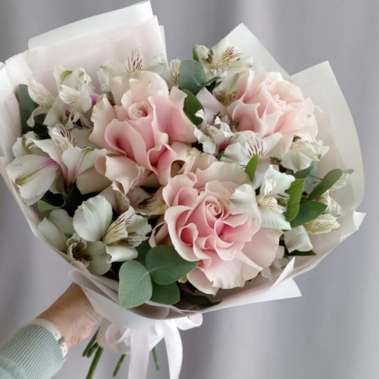 Букет из 3 французских роз и Альстромерии в Нижнем Новгороде