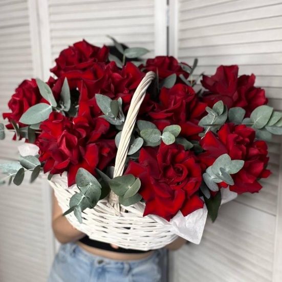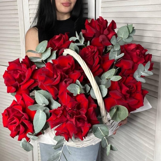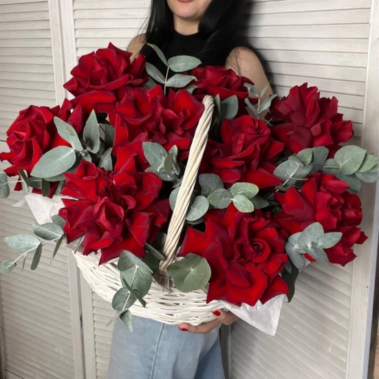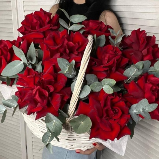 Корзина из 9 красных французских роз в Нижнем Новгороде